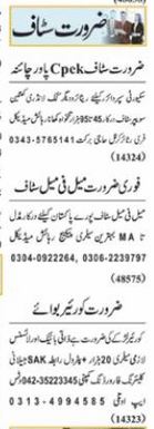 Private Company jobs advertisement dated about 19 September 2022 in daily Nawaiwaqt Newspaper invites application for the vacant post of courier boy, laundry staff, security supervisor, cook, female staff, sweeper, male staff and canteen contractor in Lahore, lahore Punjab Pakistan. Persons with Middle, Bachelor, Matric, Master and Intermediate etc. education can apply.