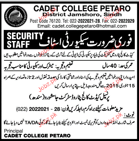 Apply as per details in job advertisement. Login to view further details of how to apply via https://www.jobz.pk online.