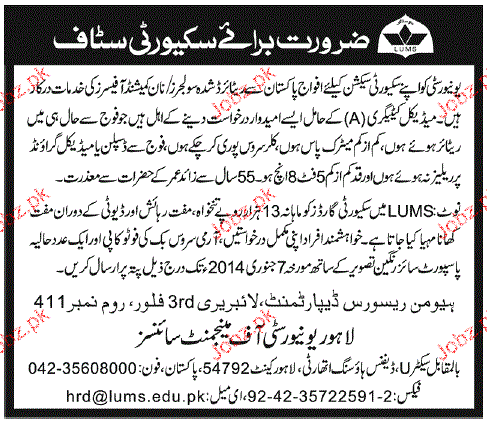Security Staff required in Lahore University of Management Sciences in Lahore