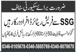 Vacant posts including security staff and retired ssg guard are announced in Private Company Lahore, lahore Punjab Pakistan as per 10 April 2022 advertisement in daily Jang Newspaper. Preferred Education is Matric and Middle etc.