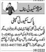 Security Company invites applications for job positions advertised in daily Dunya dated 10 December 2022 for following vacancies in Lahore, lahore Punjab Pakistan.