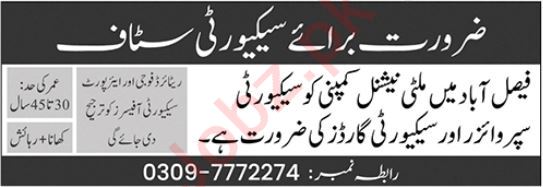 Vacant posts including security supervisor and security guard are announced in Multinational Company Faisalabad, faisalabad Punjab Pakistan as per 23 June 2024 advertisement in daily Jang Newspaper. Educational qualifications required Middle, Matric and Intermediate etc.