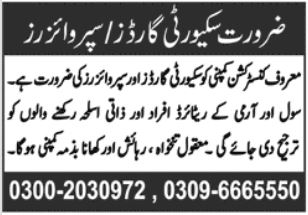 Construction Company jobs advertisement dated about 19 June 2022 in daily Jang Newspaper invites application for the vacant post of security supervisor and security guard in Islamabad, islamabad Islamabad Pakistan. Middle, Intermediate and Matric etc. educational qualification will be preferred.