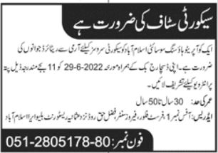 Vacant posts including ecurity guard and security supervisor are announced in Cooperative Housing Society Islamabad, islamabad Islamabad Pakistan as per 26 June 2022 advertisement in daily Jang Newspaper. Educational qualifications required Matric, Intermediate and Middle etc.