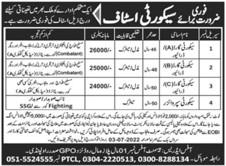 Latest Security jobs and others Private jobs in Private Company closing date is around July 3, 2022, see exact from ad. Read complete ad online to know how to apply on latest Private Company job opportunities.