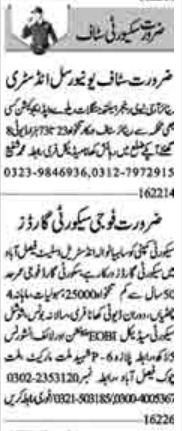 Security Company jobs advertisement dated about 1 June 2022 in daily Dunya Newspaper invites application for the vacant post of security staff, security guard and security supervisor in Lahore, faisalabad Punjab Pakistan. Educational qualifications required Intermediate, Middle and Matric etc.