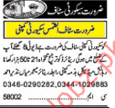 Apply as per details in job advertisement. Login to view further details of how to apply via https://www.jobz.pk online.