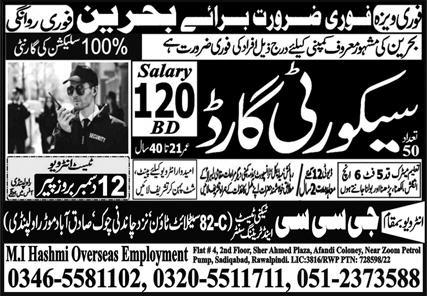 GCC Techni Test & Training Center Bahrain, bahrain Bahrain invites applications from eligible candidates for the post of security guard and security staff as per advertisement of December 10, 2022 published in daily Express Newspaper. Educational qualifications required Matric and Intermediate etc.