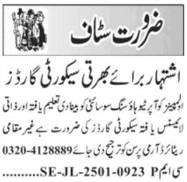 Security Staff & Security Guard Jobs 2025 In Lahore