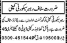 Apply as per details in job advertisement. Login to view further details of how to apply via https://www.jobz.pk online.