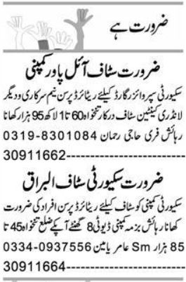 Security Company is looking for candidates for following posts as per job advertisement published in daily Express Newspaper of March 5, 2025 for location Lahore, lahore Punjab Pakistan: