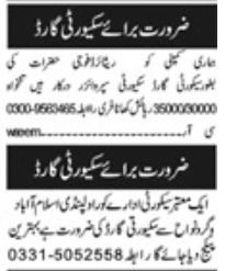 Security Company is looking for candidates for following posts as per job advertisement published in daily Khabrain Newspaper of May 10, 2025 for location Islamabad, islamabad Islamabad Pakistan:
