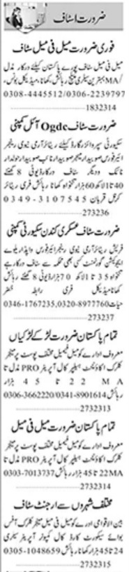 Private jobs advertisement dated about 28 March 2023 in daily Dunya Newspaper invites application for the vacant post of call operator, retired government staff, other staff, security supervisor, accountant, retired subedar major, retired havaldar, management staff, retired subedar, security guard, clerk, call computer operator, manager, helper, pro, retired naik, male female staff, retired naib subedar, office staff and office boy in Karachi, karachi Sindh Pakistan. Persons with Bachelor, Master, Matric, Intermediate and Middle etc. education can apply.