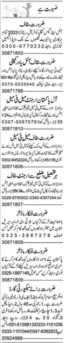Vacant posts including manager, call operator, helper, accountant, office boy, retired staff, office staff, field worker, security supervisor, field staff, supervisor, clerk, model, security guard, retired person and actor are announced in Private Company Multan, multan Punjab Pakistan as per 13 February 2024 advertisement in daily Express Newspaper. Preferred Education is Middle, Intermediate, Matric, Bachelor and Master etc.