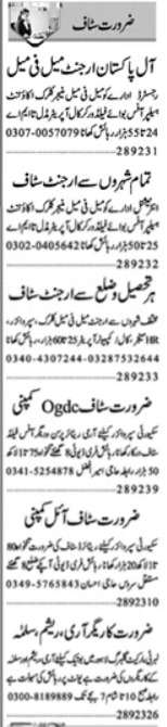 Private Multan, multan Punjab Pakistan invites applications from eligible candidates for the post of field worker, retired person, office boy, security supervisor, clerk, supervisor, computer operator, embroidery worker, call operator, accountant, helper, hr manager, field staff and manager as per advertisement of September 28, 2023 published in daily Dunya Newspaper. Candidates with Middle, Matric, Master, Intermediate and Bachelor etc. educational background will be preferred.