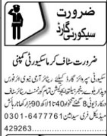 Security Company invites applications for job positions advertised in daily Roznama 92 News dated 1 November 2024 for following vacancies in Lahore, lahore Punjab Pakistan.