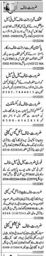 Private Lahore, lahore Punjab Pakistan invites applications from eligible candidates for the post of manager, security supervisor, retired subedar major, clerk, helper, office staff, management staff, computer call operator, retired khateeb, retired driver, retired naib subedar, pro, security guard, accountant, male female staff, call operator, retired havaldar, retired naik, retired subedar and office boy as per advertisement of December 12, 2022 published in daily Dunya Newspaper. Bachelor, Intermediate, Middle, Matric and Master etc. educational qualification will be preferred.