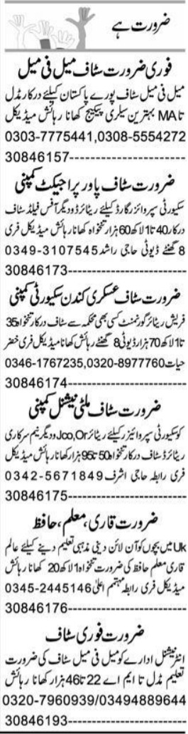 Security Supervisor and Qari jobs in Peshawar