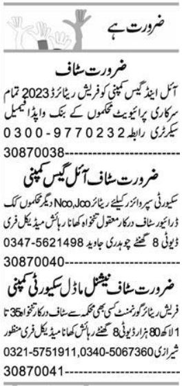 Private Company latest Classifieds Admin Clerical jobs and others can be applied till 29 February 2024 or as per closing date in newspaper ad. Read complete ad online to know how to apply on latest Private Company job opportunities. Some jobs in Private Company may require skills like Driving, Security and Cooking. On job food, medical and accommodation facility is provided.