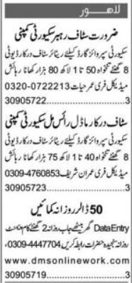 Security Supervisor Guard & Office Staff Jobs 2025 in Lahore