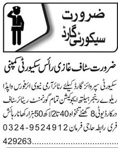 Security Company jobs advertisement dated about 21 September 2024 in daily Roznama 92 News Newspaper invites application for the vacant post of security guard and security supervisor guard in Lahore, lahore Punjab Pakistan. Middle, Matric and Intermediate etc. educational qualification will be preferred.