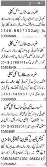 Private Company jobs advertisement dated about 9 March 2022 in daily Express Newspaper invites application for the vacant post of incharge guard, security supervisor, clerk, security staff, driver, naib qasid, khateeb and cook in Lahore, lahore Punjab Pakistan. Persons with Middle, Matric, Intermediate and Bachelor etc. education can apply.