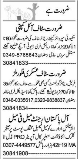 Security Supervisor Manager Clerk & PRO Jobs 2023 Peshawar