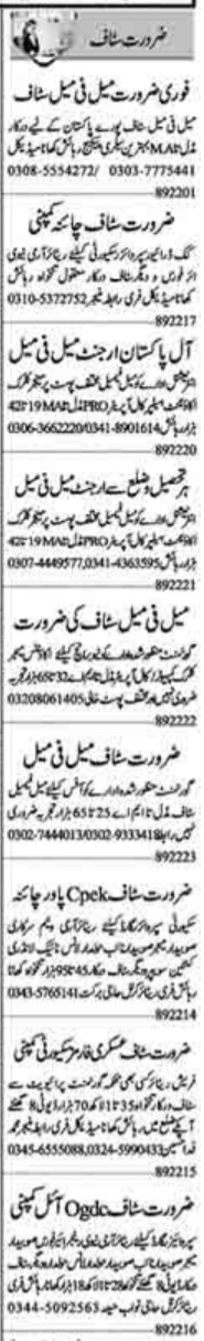 Private Company is looking for candidates for following posts as per job advertisement published in daily Dunya Newspaper of September 8, 2022 for location Multan, multan Punjab Pakistan: