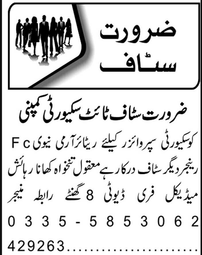 Latest Security Company Security Posts Lahore 2025
