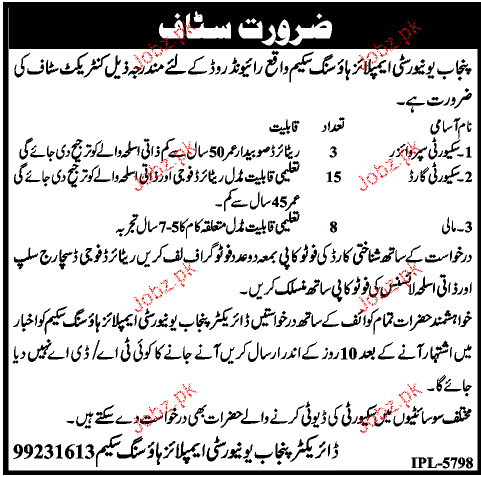 Latest Government Security Posts Lahore 2025