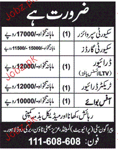 Drivers, Tractor Drivers, Office Boys, Security Supervisors and Security Guards are required in Paragon City in Lahore.