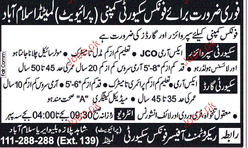 Latest Private Company Security Posts Islamabad 2025