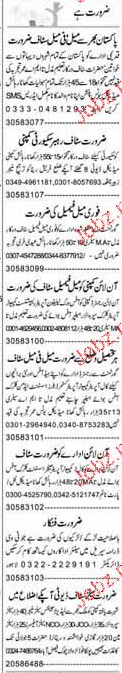 Telephone Operators, Receptionists, Clerks, Supervisors, Office Boys, Security Supervisors and Security Guards are required in Lahore. Ambitious Candidate Send their CV.