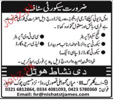 Security Supervisors and Security Guards are required in The Nishat Hotel in Lahore