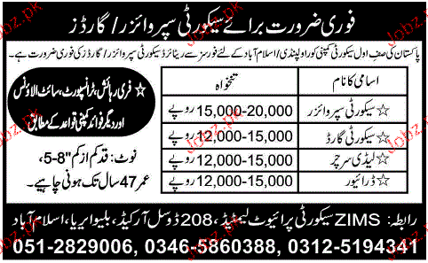 Latest Private Company Security Posts Islamabad 2025