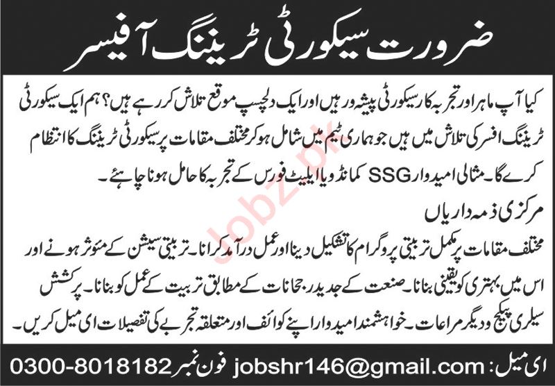 Private Sector Lahore, lahore Punjab Pakistan invites applications from eligible candidates for the post of security training officer as per advertisement of August 27, 2023 published in daily Nawaiwaqt Newspaper. Educational qualifications required Bachelor and Master etc.