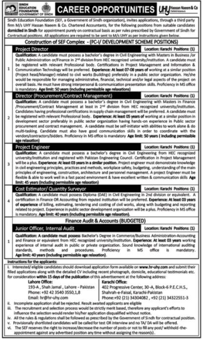 Latest Sindh Education Foundation SEF Management Posts Karachi 2025