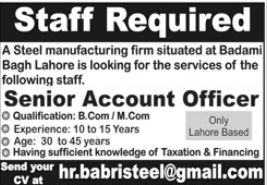 Latest Steel Manufacturing Company Accounting Posts Lahore 2025