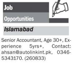 Apply as per details in job advertisement. Login to view further details of how to apply via https://www.jobz.pk online.