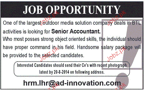 Apply as per details in job advertisement. Login to view further details of how to apply via https://www.jobz.pk online.