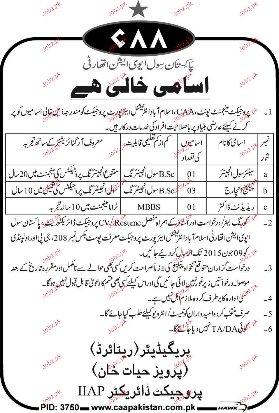 Senior Civil Engineers, Package Incharge Job in PCAA