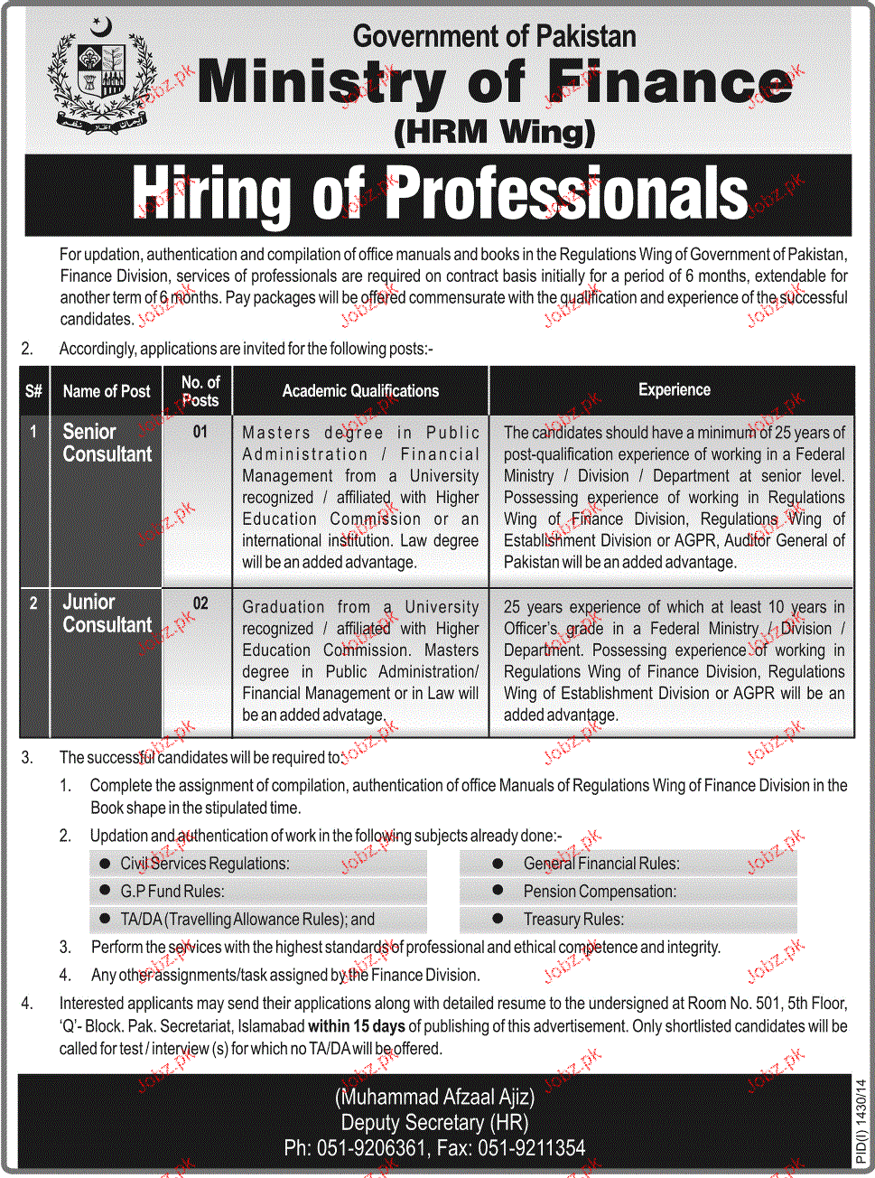 Apply as per details in job advertisement. Login to view further details of how to apply via https://www.jobz.pk online.