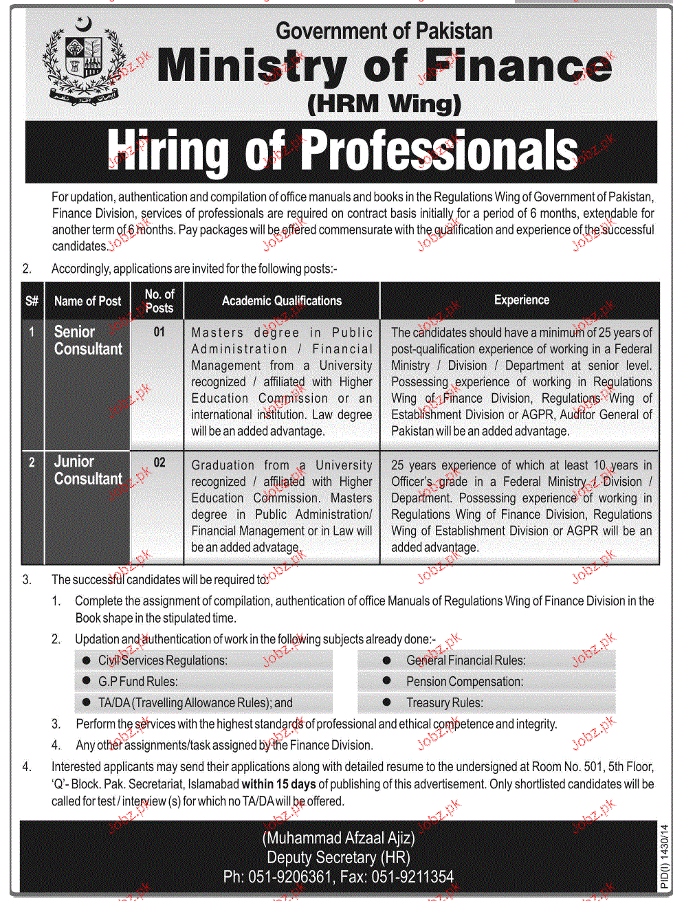 Apply as per details in job advertisement. Login to view further details of how to apply via https://www.jobz.pk online.