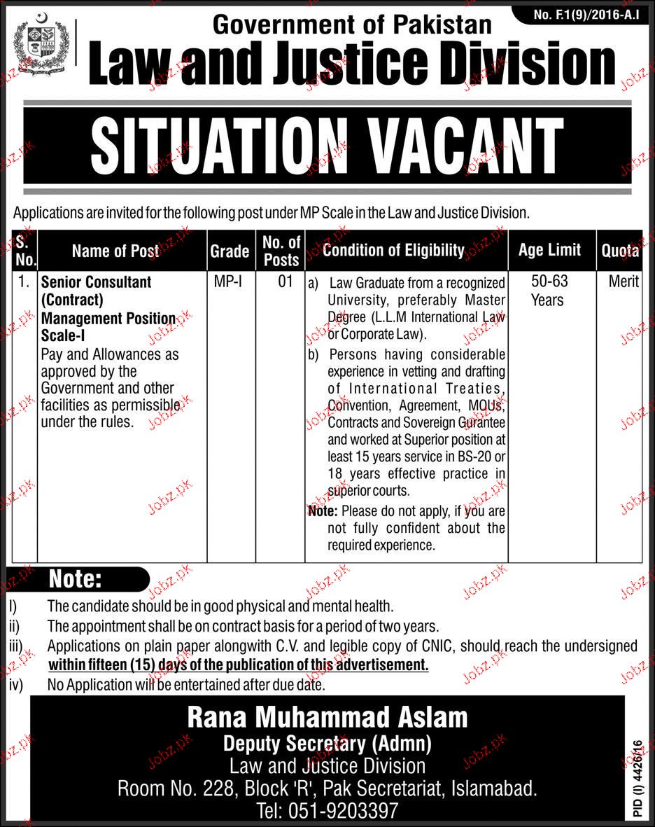 Senior Consultants Job In Law And Justice Division