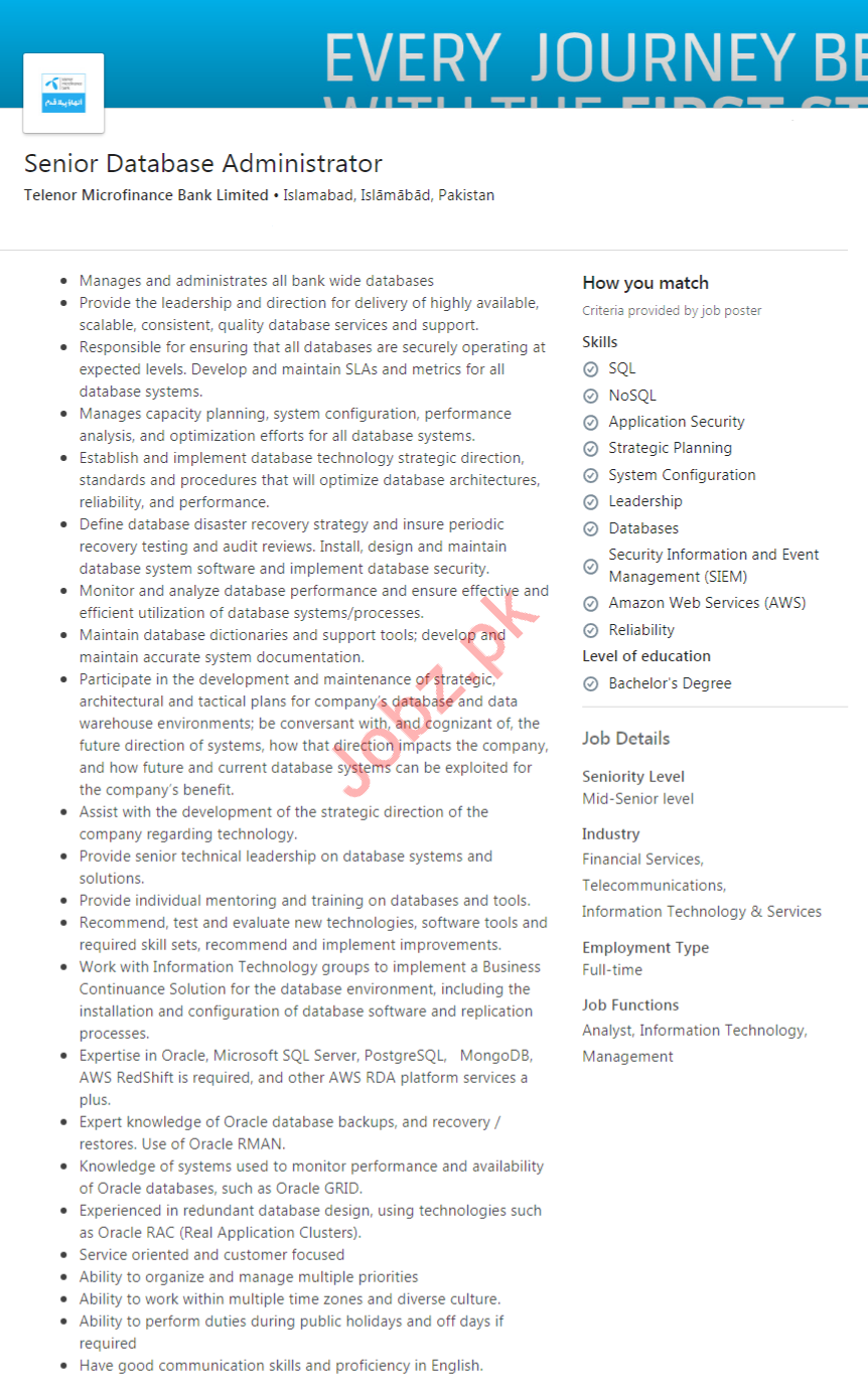 Latest Telenor Microfinance Bank IT Posts Islamabad 2025