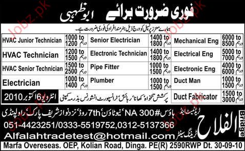 Senior Electrician, Electronic Technician, Duct Man Vacancy