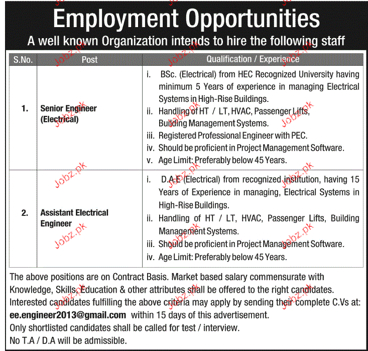 Apply as per details in job advertisement. Login to view further details of how to apply via https://www.jobz.pk online.