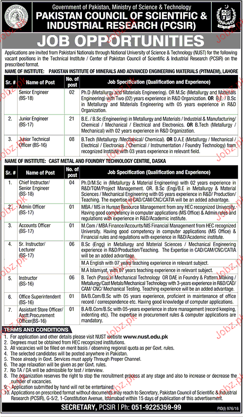 Apply as per details in job advertisement. Login to view further details of how to apply via https://www.jobz.pk online.