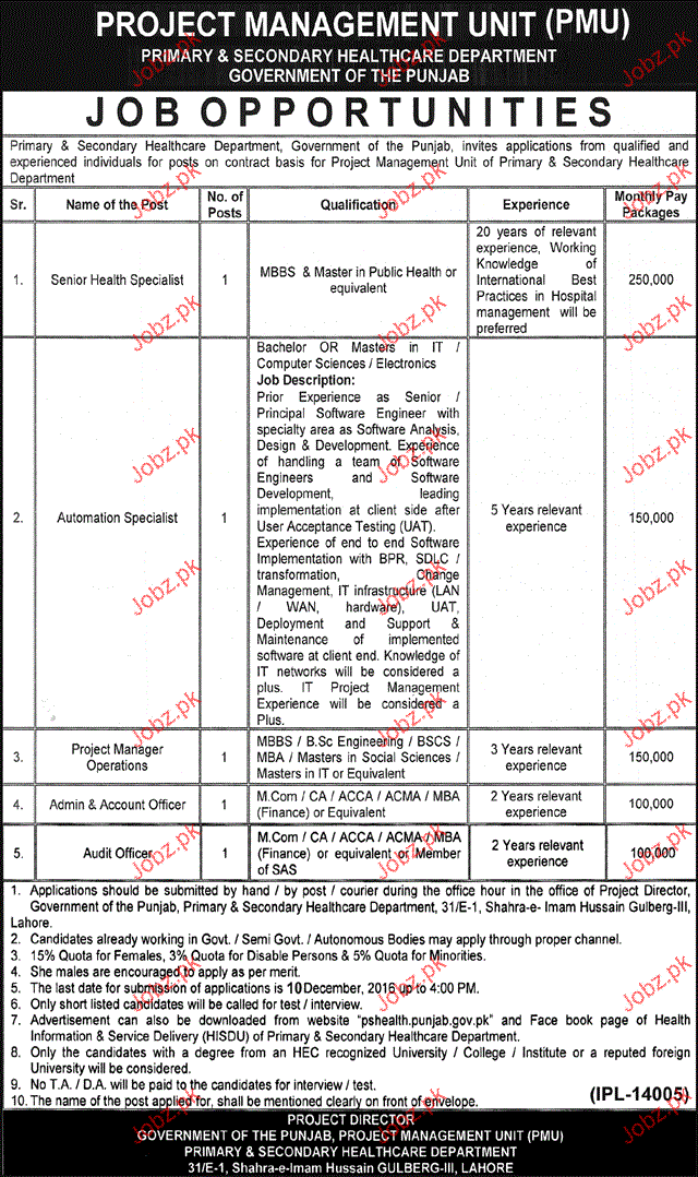 Apply as per details in job advertisement. Login to view further details of how to apply via https://www.jobz.pk online.