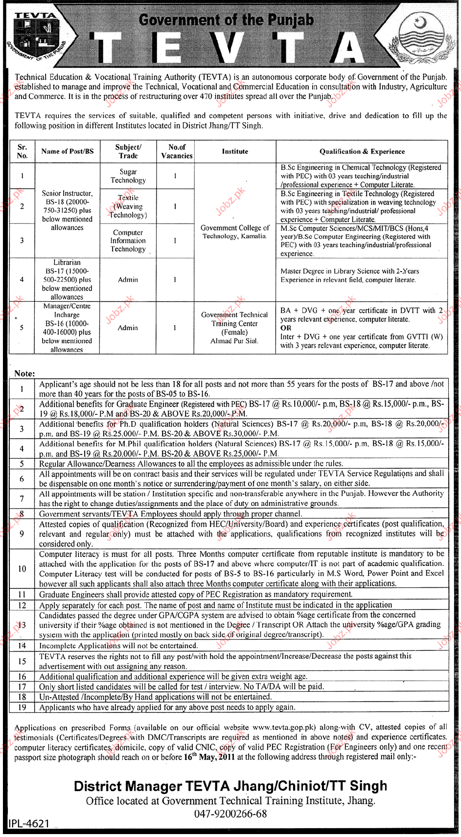 Apply as per details in job advertisement. Login to view further details of how to apply via https://www.jobz.pk online.